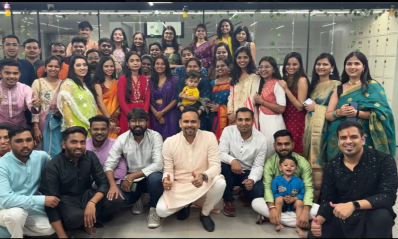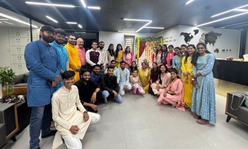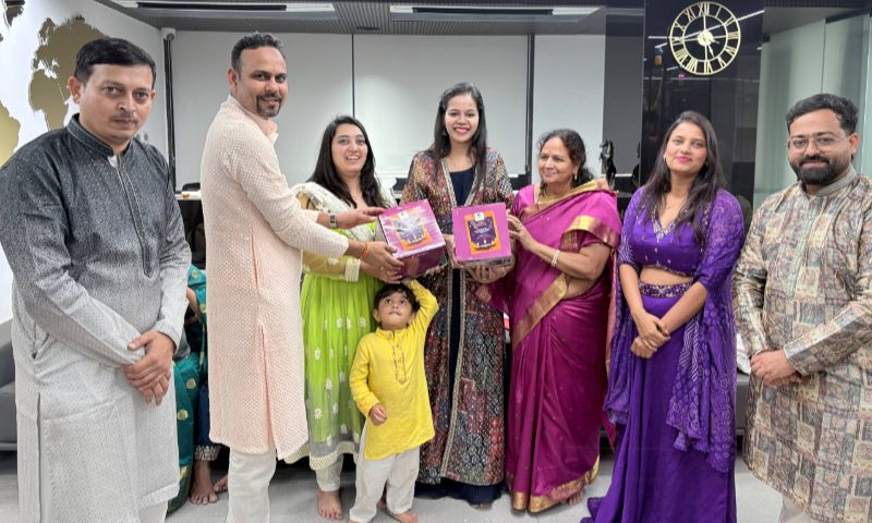 Traditional festivities including décor, sweets, and Diwali gift distribution for all team.